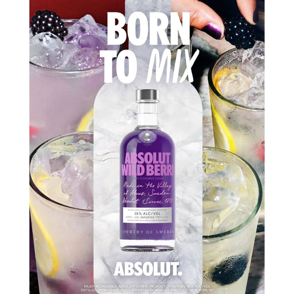 Absolut Wild Berri is your natural kick starter for the full-on house warming party, a perfect mood manager for that spontaneous after work, and everything but a wild card when it comes to mixing with others. With a natural taste of freshly picked blueberries, blackberries and wild strawberries, Absolut Wild Berri saves you the time hunting in the bushes so you can spend more time perfecting your vodka drink. Innovate to infinity, consume moderately.