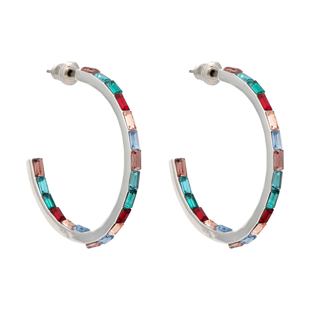 Introducing The Reflection Crystal Hoop Earrings: silver hoops adorned with vibrant coloured gems. Chic and lightweight, these earrings add a burst of colour and elegance to any outfit. Elevate your style effortlessly. Presented in a gift box, with 1-year International Warranty.