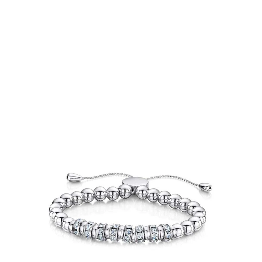 These on-trend bracelets make the perfect gift of friendship. Gleaming polished beads in silver tone, interspaced with eight sparkling rings of shimmering crystals. Each bracelet has a sleek toggle fastening to make then suitable for any wrist size, they have a beautiful fluid movement and wonderful sparkle that will add a touch of shine to your look.