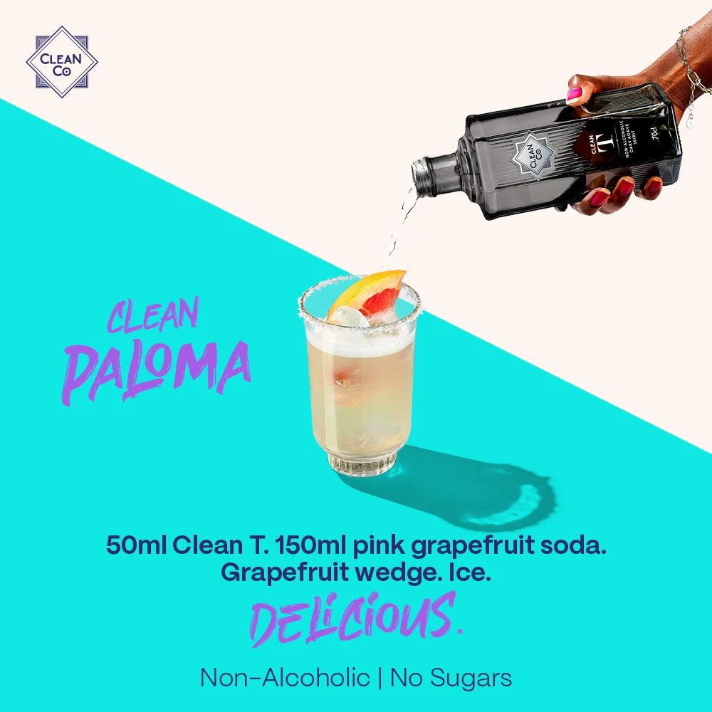 | How to enjoy Best | Makes a perfect non-alcoholic Paloma. Salt the glass rim and fill with ice, add 50ml Clean T, 150ml of pink grapefruit soda and garnish with a grapefruit wedge. |