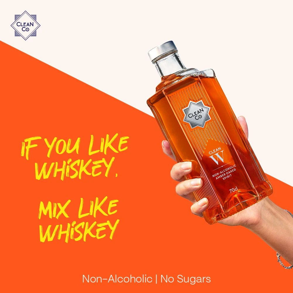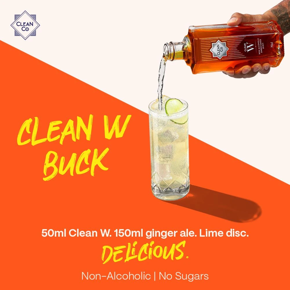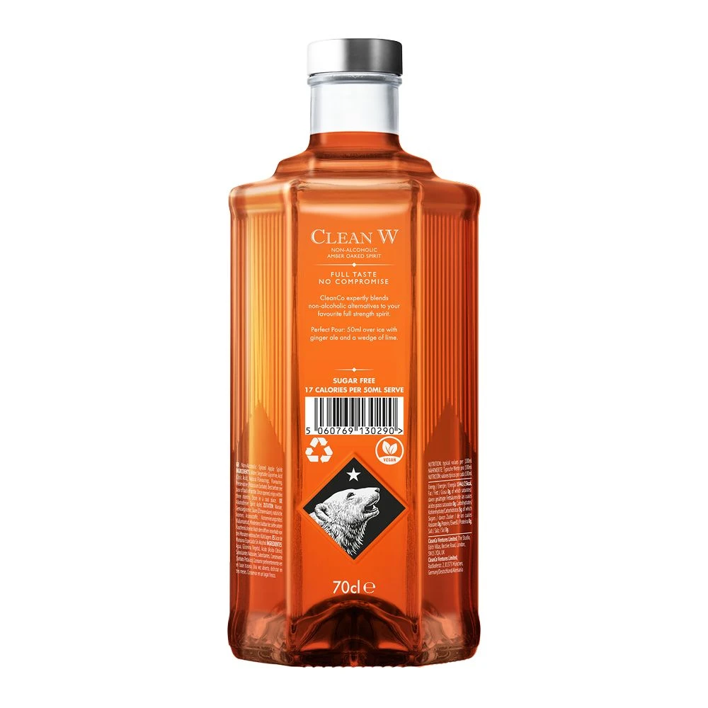 Clean W: like Bourbon Whiskey, but without the alcohol. A characteristic Bourbon nose with classic notes, oak and sweet vanilla, underpinned by rich spice, apple and figs, with a smooth finish. Enjoy rich flavours without the compromise. This product is designed to replace Whiskey in cocktails, not to be consumed neat.