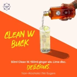 | How to enjoy Best | Makes a perfect Clean W Buck. Take a highball glass and fill with ice, add 50ml of Clean W, 150ml of ginger ale and finish with a lime disc |