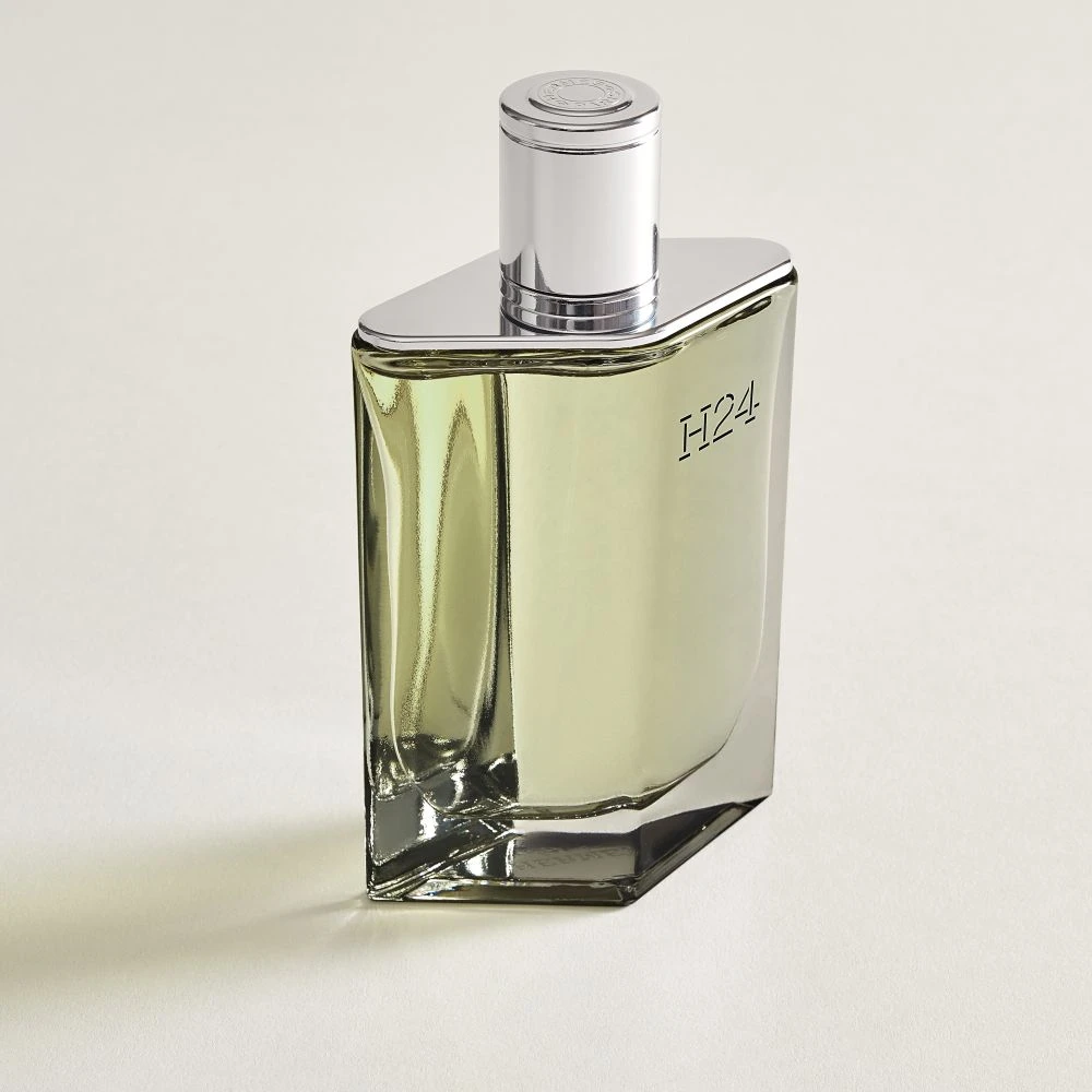 THE CREATION Created by Hermès perfumer Christine Nagel, H24 Eau de Parfum reveals an intense strength as the signature of a new energy. OLFACTORY NOTES A woody aromatic, H24 Eau de Parfum draws on the generous, botanical power of enveloping sage, dense high-tech moss, and warm and vibrant sclarene. THE OBJECT With its pure lines, the bottle designed by Philippe Mouquet is adorned with moss-green lacquer to echo the fragrance’s olfactory notes. The intense grey box is decorated with a fine lime-green line that delimits and opens up the space. ETHICS The aerodynamic, refillable bottle is crafted from recycled glass. Made entirely of untreated paper, the box is composed of recycled fibres. THE HERMÈS DETAIL H24 is the key to a new space. H for Hermès, Homme and Hours. 24 to evoke a relationship with time and a link to the house’s flagship address of 24 rue du Faubourg Saint-Honoré.
