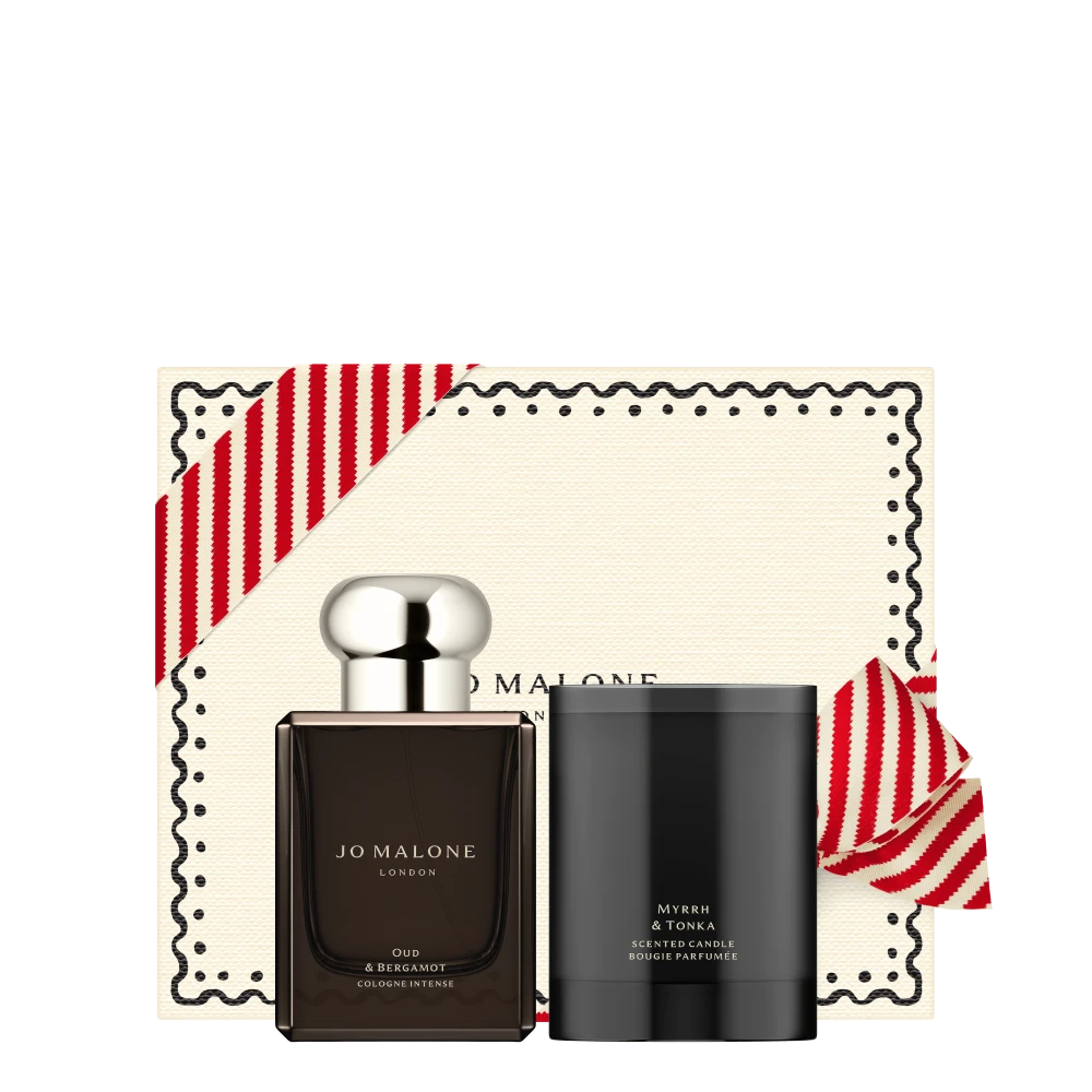 An alluring pairing for them and their home wrapped in a gingerbread-inspired gift box. Scent skin with the mysterious woody scent of Oud & Bergamot in a Cologne Intense and fill small spaces with the warm, captivating notes of Myrrh & Tonka in a Travel Candle. This set contains: • Oud & Bergamot Cologne Intense, 50ml • Myrrh & Tonka Travel Candle, 65g