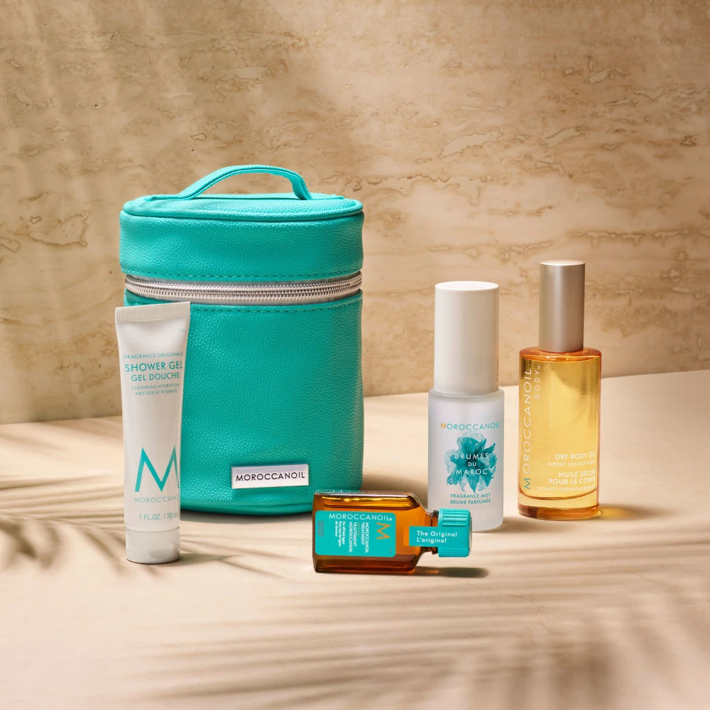 Discover hydrating essentials from Moroccanoil with this limited-edition, travel-sized set. Hydrating Shampoo and Conditioner deliver daily hydration with argan oil, vitamins A and E, and red algae, while Moroccanoil Treatment conditions, fights frizz, and boosts shine. Shower Gel hydrates as it cleanses, while Hand Cream leaves hands silky-soft with argan oil and hyaluronic acid. Hair & Body Fragrance Mist features a lightweight formula to refresh from head to toe. All products are fragranced with the signature Moroccanoil scent, a blend of spicy amber and sweet floral notes.