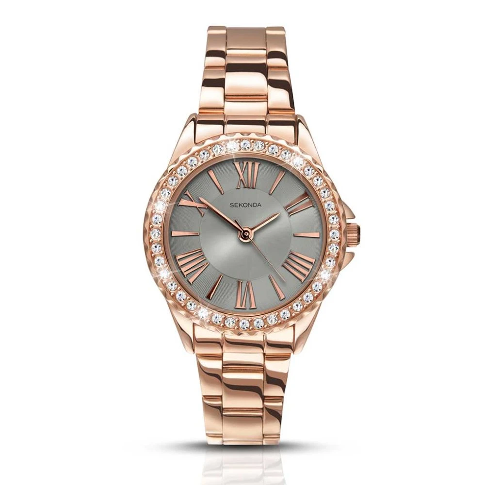 Sekonda Editions 2397 is a beautiful and eye-catching Ladies watch. Case is made out of PVD rose plating and the Grey dial gives the watch that unique look. In regards to the water resistance, the watch has got a resistancy up to 30 metres. It means it can be worn in scenarios where it is likely to be splashed but not immersed in water. It can be worn while washing your hands and will be fine in rain. We ship it with an original box and a guarantee from the manufacturer.
