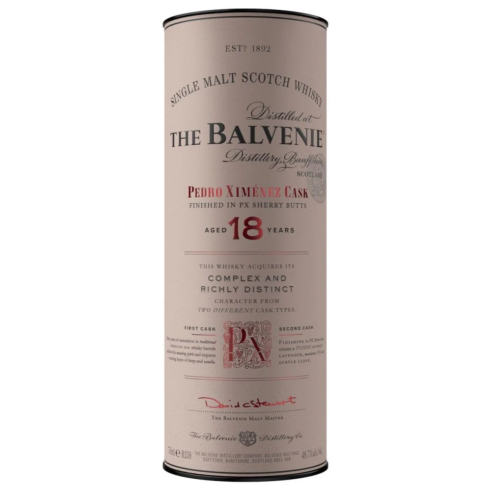 The Balvenie Pedro Ximénez Cask is a complex and richly distinct single malt which has been finished in casks that previously held Pedro Ximénez sherry. Pedro Ximénez is a white Spanish wine grape variety grown in several Spanish wine regions. The heat from the sun ripens the vines and produces a wine of intense, dessert-like sweetness. This is the second sherry finish expression in The Balvenie range of finishes.