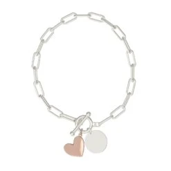 Introducing our stunning EMBRACE heart T-BAR BRACELET, a must-have accessory for every jewellery lover! Designed with anexquisite rose gold heart and silver chain, this timeless piece is perfect for adding a touch of elegance to any outfit. With its delicate design and secure T-BAR clasp, it’s the ideal gift or personal treat.