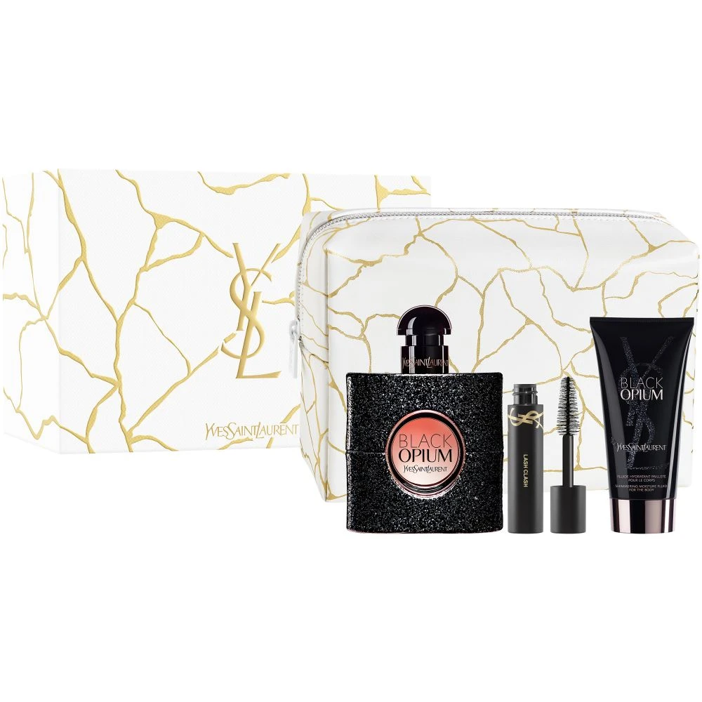 This Holiday season, YSL Beauty invites you to break into an ice fantasy. Led by the light of an iconic YSL golden snowflake, discover the Black Opium gift set, containing a Black Opium full size 50ML with a Mini Lash Clash, a 50ML Body Lotion, and a Pouch offered. Crafted in a unique marble design made of ice and veins of gold. This luxurious gift set box is made of 100% cardboard sourced from responsible sources (FSCTM mix). Reuse it or recycle it. BREAK THE ICE. CELEBRATE IN GOLD.